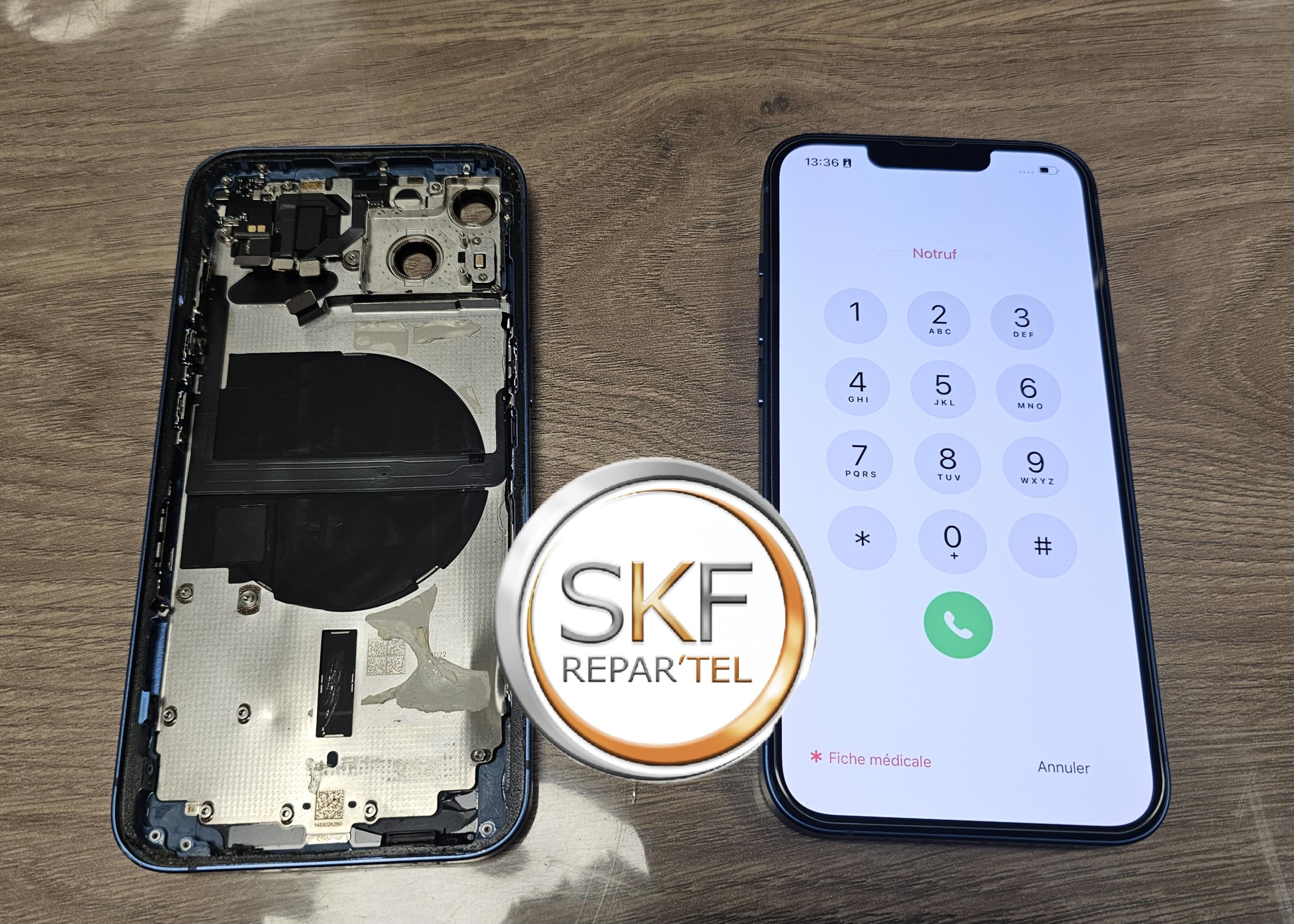 descriptionUn problème Iphone 12 , Iphone 14, serie 15 ou série 16, vitre arrière Iphone 17 pas panique l'unique solution en Alsace SKF RÉPAR'TEL vous remplace cela directement chez vous avec des châssis iphone d'origine constructeur neuf.